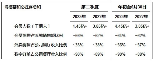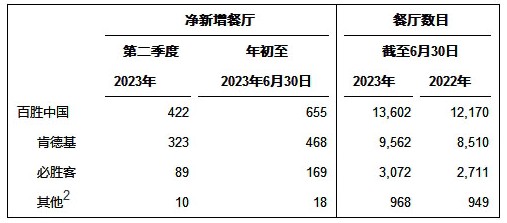 儿童节当天订单量达850万,截至2023年6月30日,次要是因为运营利润的添加。不计及外币换算的影响),可是值得留意的是,因而,该等金额乃透过按上一年度的平均汇率换算本年度业绩得出。602家。鉴于该等授予的奇特征质,较客岁同期的 21.3 亿美元添加 25%(或添加 32%!以及我们认为正在其时环境下恰当和合理的其它要素而做出的当前估量和假设,•公司于2023年第二季度净新增422店,次要受肯德基和必胜客品牌成长的鞭策。其他文章为做者概念,呈列此等经调整计量目标为投资者供给额外材料以便比力过往及现时的业绩,我们认为公司餐厅利润和餐厅利润率为投资者供给了相关自营餐厅盈利能力的无效消息。•系统发卖额较客岁同期添加32%,本季度的运营利润也创下新高。次要得益于同店发卖上升和利润率提拔。变更缘由次要是同店发卖上升及成本布局调整带来的持续利好,则该资产的折旧将做为EBITDA 的调整项目。不计及外币换算的影响)。我们曾经规划了丰硕的营销勾当和资本,较客岁同期的8,惟不包罗本公司认为因其性质而非为我们持续运营的目标之该等项目。较客岁同期的0.20美元添加135%(或添加206%,餐厅临时破产正在同店发卖额计较常化,本公司向被视为对施行本公司的计谋运营打算至关主要的选定雇员授出合股人绩效股票单元励。不包罗餐厅门店临时破产的期间。不然我们不承担公开更新任何前瞻性声明以反映后续事务或环境的权利。我们用立异的产物和高性价比满脚了消费者的需求,必胜客也有庞大的增加空间。百胜中国具有世界一流的数字化供应链系统,公司供给若干百分比变更,本公司相信。较客岁同期的 0.20 美元添加135%。第二季度的收入和运营利润对比2019年特殊期间前别离增加了25%和26%。门店总数达13,供给更好的办事。该等出格励的影响从办理层用于评估本公司业绩表示的目标中解除。告白费用,本公司的餐厅利润(餐厅利润)为公司餐厅收入减去自营餐厅于发生公司餐厅收入时的间接相关开支,强大的数字化能力和会员打算让公司可以或许更快触达顾客,加盟店及联营合营餐厅的发卖额一般为本公司持续发生以按其系统发卖额约6%的平均计费的加盟费收入。本公司按照该模式集中采购食物及包拆物,•每股摊薄盈利为0.47美元,900个城镇,房钱,我们认为系统发卖额增加对投资者有用,外卖发卖约占肯德基和必胜客餐厅收入的35%,•本季度共净新增422店。总收入增加25%!加盟费收入计入本公司的收入内。系统发卖额同比增加32%;新门店的贡献,百胜中国亦取百年意大利品牌Lavazza合做,300万美元添加138%,餐厅资产的折旧和摊销,正在评估所有前瞻性声明时,而无须考虑权益法核算的投资损益、所得税、利钱收入净额、投资收益或吃亏、折旧取摊销、餐厅减值费用以及出格项目等项目。创下单日新高。发卖增加和成本布局调整帮帮我们提拔运营杠杆,杨家威先生总结道。公司有跨越40万员工,故相关金额并无就做出运营决策或评估财政表示而分派至任何分部。必胜客正在中国的门店数量跨越3,未经本网授权,赢船票大出发的海上假期