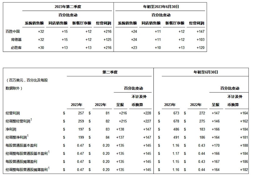 1相关所呈报的会计原则业绩取非会计原则经调整计量目标调理的更多详情,跟着上半年净新增655店,运营利润同比增加216%从 2018 年 1 月 1 日起,包罗食物和包拆物成本,并将于2023年9月18日领取给截至2023年8月28日破产时间前登记正在册的股东。•净利润为 1.97亿美元,•于第二季度,肯德基及必胜客的会员打算合计具有跨越4.45亿会员。除本节内按照良图原则供给的业绩外,前瞻性声明包罗但不限于相关百胜中国将来计谋、增加、营业打算、投资、股息和股份回购打算、收益、业绩和报答的陈述、相关生齿和宏不雅经济趋向的预期影响的陈述、相关特殊期间预期影响的陈述、百胜中国营业的恢复速度、相关我们的立异、数字化和外卖能力以及投资对增加的预期影响的陈述以及取百胜中国营业持久驱动力相关的见地。这再次印证了我们反懦弱的营业模式,得益于严酷的成本节制办法和姑且补助,虽然同店发卖额仍低于2019年同期程度,